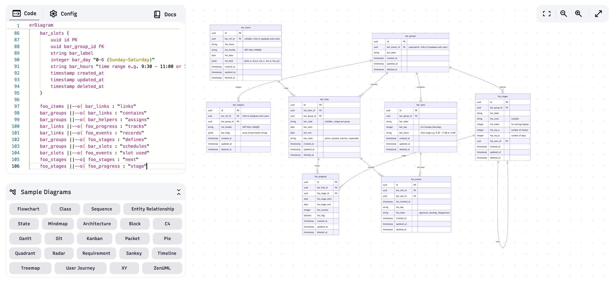 Once the diagram draft is ready (pen and paper are good enough), take a screenshot and ask the agent to generate an *.mmd file (mermaidjs format, highly recommended) or any other format you prefer. From that moment there should be a rule for the agent to use that diagram as reference for any request - migration, refactor, implementation - related to the product you're building.